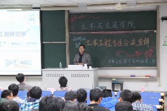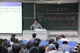 首先由桥梁工程研究所的谢发祥老师进行桥梁工程方向的专业介绍。谢老师从南京各大桥梁入手,详细介绍了桥梁工程研究方向、课程设置等,强调桥梁工程的重点在桥梁的养护与检测方面。结构研究所的沈德建老师以“奇妙结构,多彩人生”为主题进行了介绍,幽默风趣语言引来现场阵阵掌声。隧道与城市轨道工程研究所的沈才华老师从学科简介、学术交流、就业方向等方面进行了介绍,并强调地下空间有大的潜在价值。岩土工程的吴跃东老师就学科的历史沿革、人才培养、研究方向等方面讲述岩土工程的基本情况,并通过动画演示“桥头跳车”现象,更形象地为同学诠释了岩土工程的实际应用。最后沈经理从分流、教学、教务、管理、生活五个方面进行总结,既对2012级土木分流的总体规划做了介绍,也对一些分流细节做了解释,同时还对之前2012级同学在年度公司教学教务意见问卷调查中所提出的问题,和同学们进行了诚挚的沟通。老师们的生动讲解引起了同学们的热烈反响,纷纷提问,老师们也一一热情地作了回答,宣讲会持续了三个多小时。