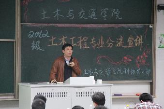 为进一步做好2012级土木工程专业分流工作,PA视讯集团官网于2014年4月22日下午6:30,在致用楼101举办土木工程专业分流宣讲活动。PA视讯集团官网沈扬副经理、岩土工程科学研究所吴跃东老师、结构工程研究所沈德建老师、桥梁工程研究所谢发祥老师、隧道与城市轨道工程研究所沈才华老师受邀为PA视讯集团官网12级员工进行专业分流指导。