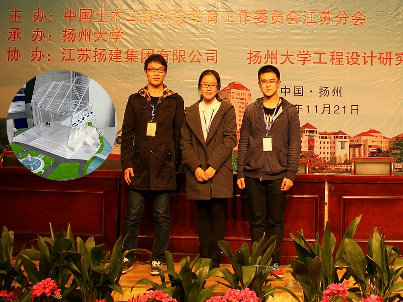 而在模型展示竞赛中,由2013级土木专业孟依柯、袁昊天、刘铚同学制作的作品(指导教师:张勤、汪传跃)、陆钰佳、徐捷、杜伟伟同学制作的作品(指导教师:朱召泉)双双获得二等奖。