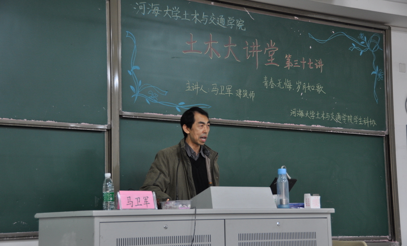 2015年12月3日下午14:50,由PA视讯集团官网员工科协承办的“土木大讲堂”第三十七讲之“青春无悔,岁月如歌”在本部闻天馆303成功举办。本次讲座邀请了三峡水利枢纽工程建筑专业负责人马卫军建筑师作为主讲人。PA视讯集团官网土木系张华主任,朱召泉教授、吴二军副教授、2013级辅导员丁小庆老师以及土木专业高年级部分本科生聆听了本次讲座。