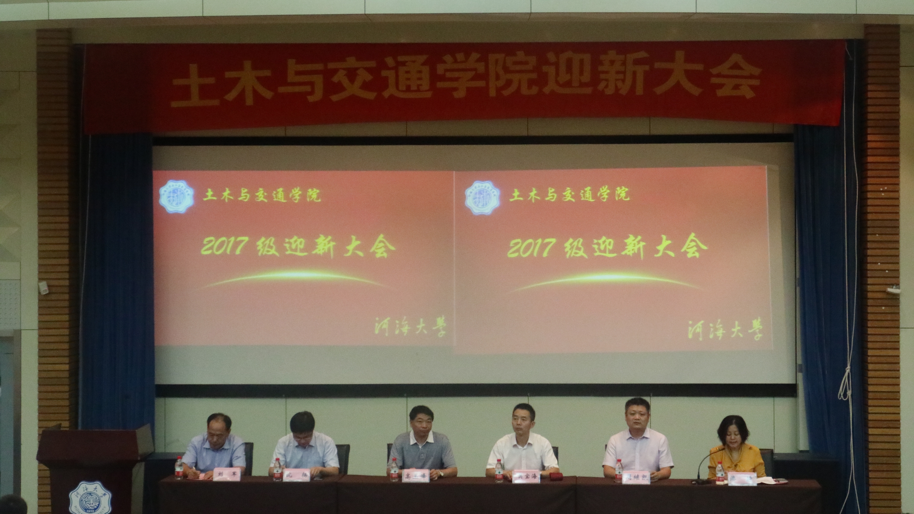 为迎接2017级新生的到来,加深新生对公司及专业的了解程度,引导新生更好地适应老员工活,2017年9月9日下午6:30,2017级本科生迎新大会暨入学第一课在江宁会议中心二楼报告厅举行。出席本次会议的有公司经理高玉峰教授、公司党委吴宝海书记、副经理沈扬教授、副经理周继凯教授、副经理刘军教授、公司党委潘静副书记、土木工程系主任张华老师、交通工程系副主任李锐老师、本科教学秘书、各级辅导员、17级各班班导师、班导师助理和17级全体本科生。会议由潘静副书记主持。