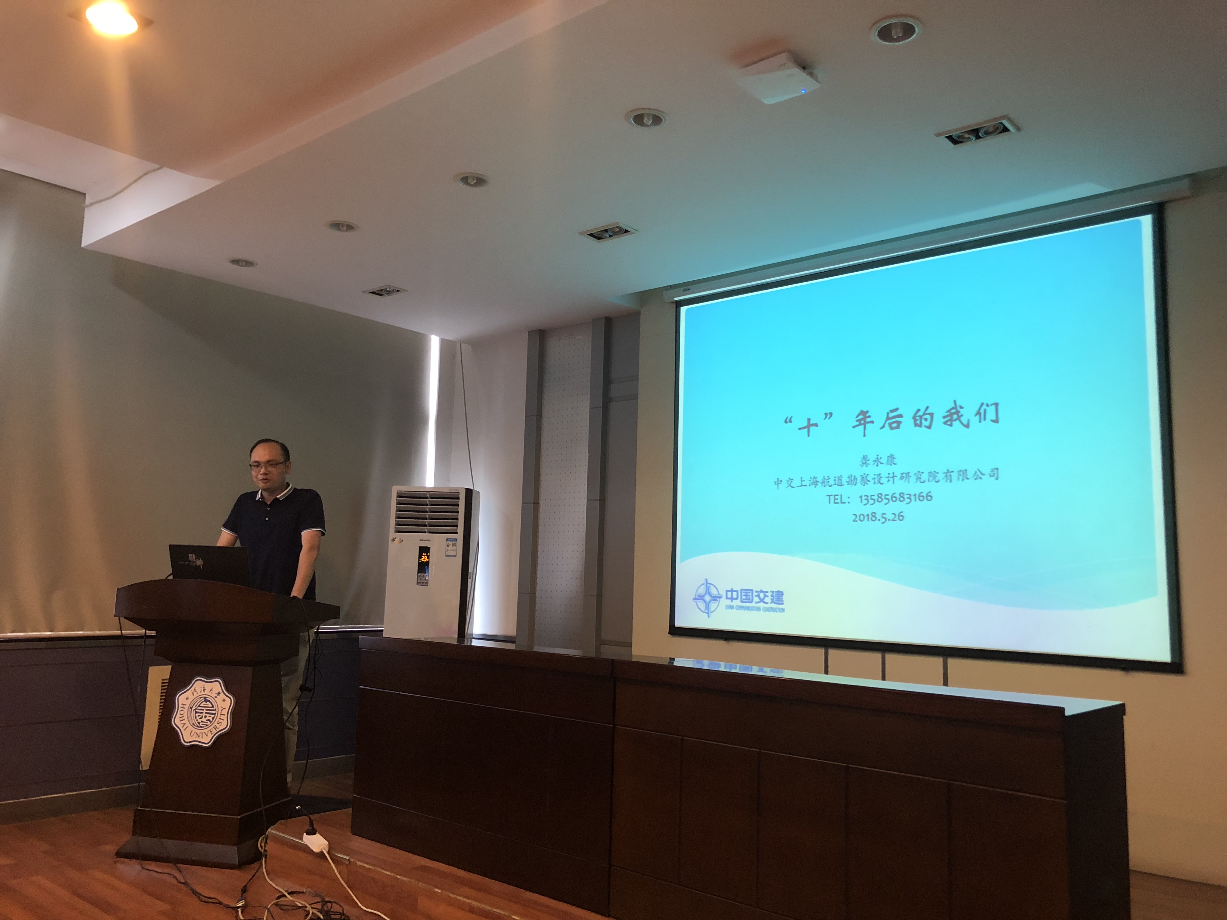 2018年5月26日下午14:30分,主会场活动正式开始,六位员工依次分享自己员工时代和工作阶段的感触和经验。来自中交上海航道勘察设计研究院有限公司的龚永康员工首先开始了他的分享《“十”年后的我们》,他通过一组照片介绍了目前自己的集团及公司的具体工作内容,其次他对自己从“员工党”到“上班狗“这段历程进行讲述。他建议同学们在思考工作问题时,一定要从自身实际出发、提前规划;在工作中,责任心是最被看重的品质。来自中建八局东北公司的张可心员工,以时间线的形式带领同学们走进他的大学和工作生活,他感慨自己在大一大二过得恍恍惚惚,在大三时进入迷茫期,但最终以“专注+行动”,收获了踏实的成果;他将建筑施工行业简洁地概括为“人机料法环”,并深入这五点一一展开。