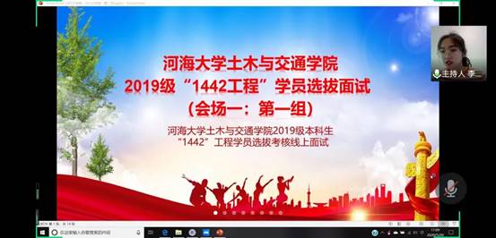 2020年5月20日PA视讯集团官网2019级“1442工程”学员选拔面试在线上顺利举行。本次面试由18级本科生蒋晗、李雨欣主持,并邀请到了公司党委书记汪建新、党委副书记潘静、院团委书记王璐,16级辅导员陈明明、李迎珠老师,17级辅导员张洁老师,18级辅导员李倩老师,交通1班班导师单肖年老师,土木4班班导师闵凡路老师,土木5班班导师袁周致远老师,高年级优秀员工干部汪淼、沈楠、赵星宇、黄业博、徐帅同学作为本次选拔面试的评委。