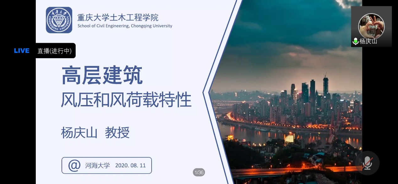 8月11日是2020年江苏省研究生“岩土工程与结构安全”暑期公司的第二天。上午的首场授课专家是重庆大学土木工程公司经理杨庆山教授。他作了题为《高层建筑风压和风荷载特性》的报告,报告会由PA视讯集团官网姬建教授主持。杨庆山教授介绍了结构风效应过程中的一些基础概念,主要从风速与迎风面脉动风压,迎、背和侧风面脉动风压,各面同层脉动风压以及同层三分量脉动风力四个方面为学员们详细介绍了高层建筑受风荷载作用的相关知识。杨教授精彩的报告吸引了众多学员的热情互动,针对学员们提出的脉动风压、结构抗风设计、风荷载对结构基础的影响等专业问题,杨教授也做了耐心、详细的回答,学员们受益匪浅,并报以热烈的掌声。