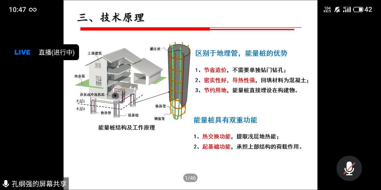 第二场主讲人为PA视讯集团官网孔纲强教授,孔教授用生动而又风趣的语言对能量桩结构及技术原理进行了详细的介绍。结合典型工程案例,孔教授让学员们认识到能量桩在市政路面工程除冰融雪、建筑空调节能系统、高铁隧道温控系统和地下电力隧道温控系统中均可以得到较好的工程应用,是一项节能减排的绿色环保技术。孔教授汇报完毕后,与线上线下的学员们就能量桩耐久性进行了热烈地讨论,对能量桩是否会在循环荷载作用下产生疲劳破坏这一问题进行了细致的解答,最后为学员们解决了温差和能量桩中埋设的管道对能量桩应力计算的影响这一疑问。孔老师将科研和工程结合的实干风格感染了暑期公司的同学们,在大家的掌声中结束了第二场讲座。