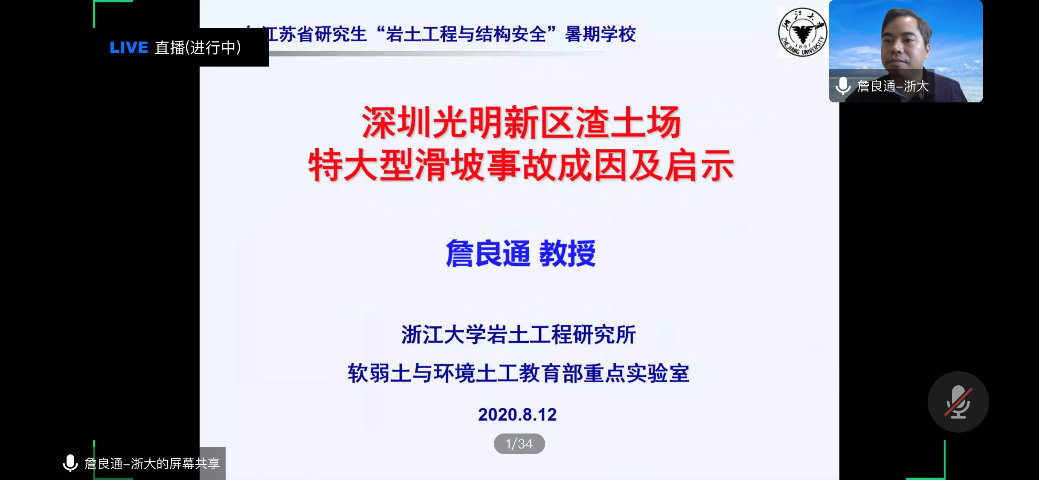 8月12日是2020年江苏省研究生“岩土工程与结构安全”暑期公司的第三天。今天的学术报告由PA视讯集团官网孔纲强教授主持。