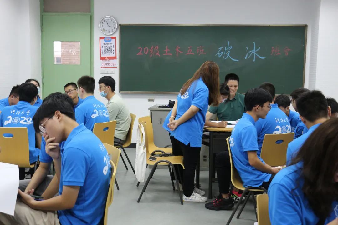 9月10日下午15:50,2020级各班级在助学导师们的组织下有序开展了“破冰”主题班会。班会的第一阶段为自我介绍,同学们要在短时间内概括出自己的最大特点并向大家介绍自己。随后大家开展了“破冰”主题的小游戏,诸如点爆竹,你做我学等,通过团队合作和互动,友谊的小船就这样愉快地起航啦!接着,大家划分为多个小组,班级发布了合作创作小组Logo的任务。组员们发挥天马行空的想象力,齐心协力,大胆创作,呈现出了一幅幅别有新意的Logo,同时进行上台展示,在欢声笑语中拉近了距离。最后,一个完美的“破冰”主题班会由一张温馨美好的班级集体合照落下帷幕。