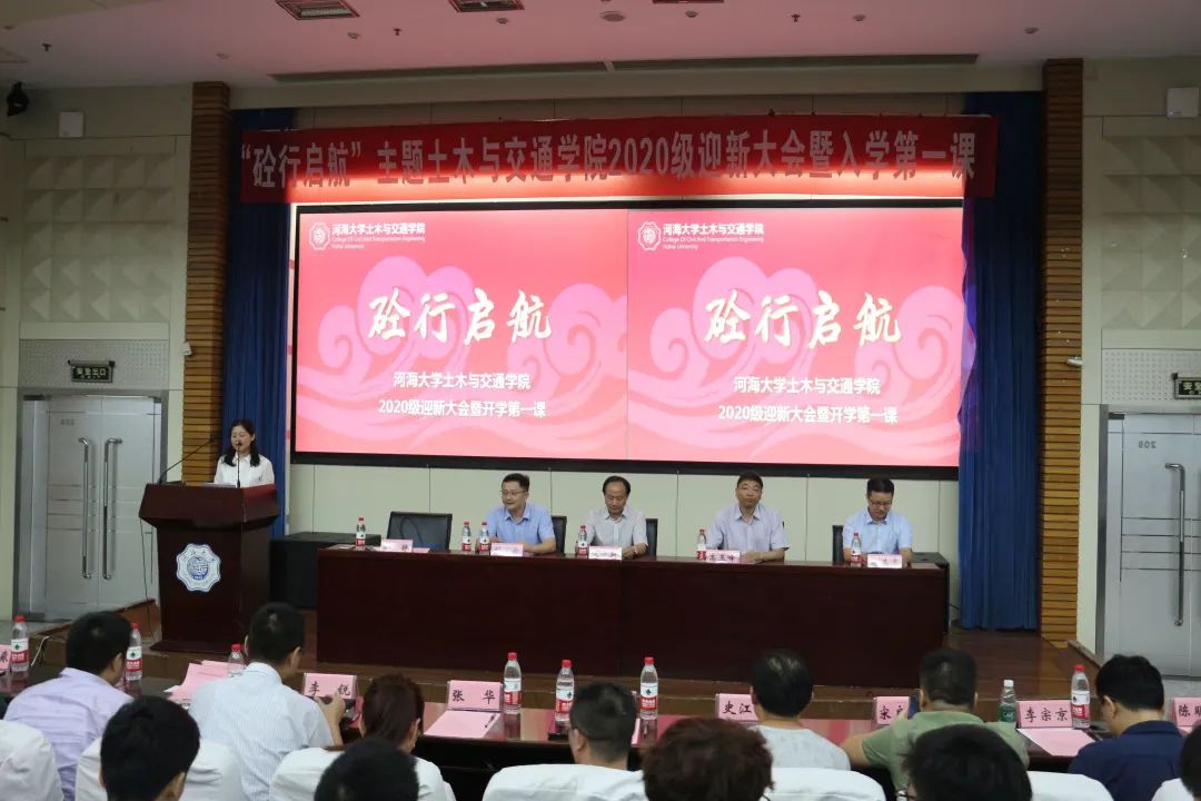 2020年9月10日上午10:00,PA视讯集团官网“砼行启航”2020级本科生新生迎新大会暨开学第一课在江宁会议中心二楼报告厅顺利举行。公司党委书记汪建新、经理高玉峰教授、副经理朱其志教授、副经理刘云副教授、公司党委潘静副书记出席了本次会议。土木工程、交通工程系主任、20级班导师、教学秘书、全体本科生辅导员、班导师助理以及2020级全体同学参加了本次大会。