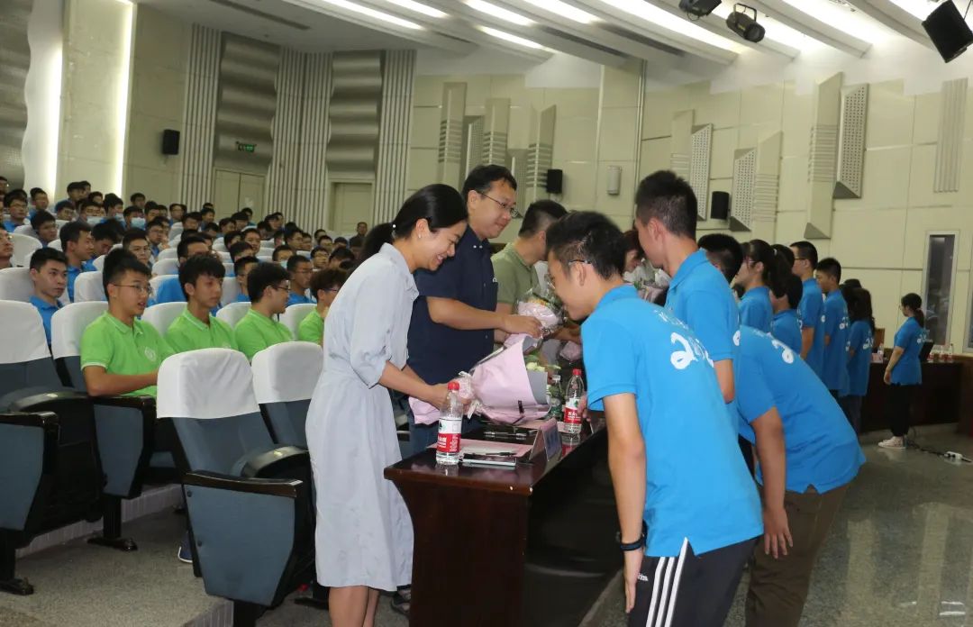 大会伊始,经理高玉峰教授首先致辞并作公司介绍。高经理从公司发展历史、团队队伍、机构组成、团队建设、科学研究和人才培养等方面,系统地介绍了公司的情况,并给同学们展示了未来的发展道路、表达了对同学们殷切的期望。副经理刘云副教授从本科培养方案入手,向同学们介绍了公司的教学模式、系统管理体系、丰富活动、视野拓展、卓越提升、有序传承、远大前程等。还讲述了公司的同学们竞赛获奖背后的辛酸又有趣的故事。接着,高年级员工代表王润民同学与2020级新生们分享大学学习生活经验和竞赛经验,并向院内老师表达了节日的祝愿。2020级新生代表胡元龙同学表达了自己对青年人的责任和担当的理解,展现了初生牛犊不怕虎的风采和成为一名土木人的自豪与对未来的期盼。最后,公司党委潘静副书记为2020级新生作出三个提醒:第一,要有一颗同祖国人民同呼吸共命运的中国心;第二,要有一种追求卓越的精气神;第三,要学会做好职业生涯规划,做一个有目标有计划有行动的人。激励新同学成为具有中国灵魂、全球视野、河海特质的一流人才。同时,新生代表向与会教师们献花,表达对老师们衷心的祝愿。