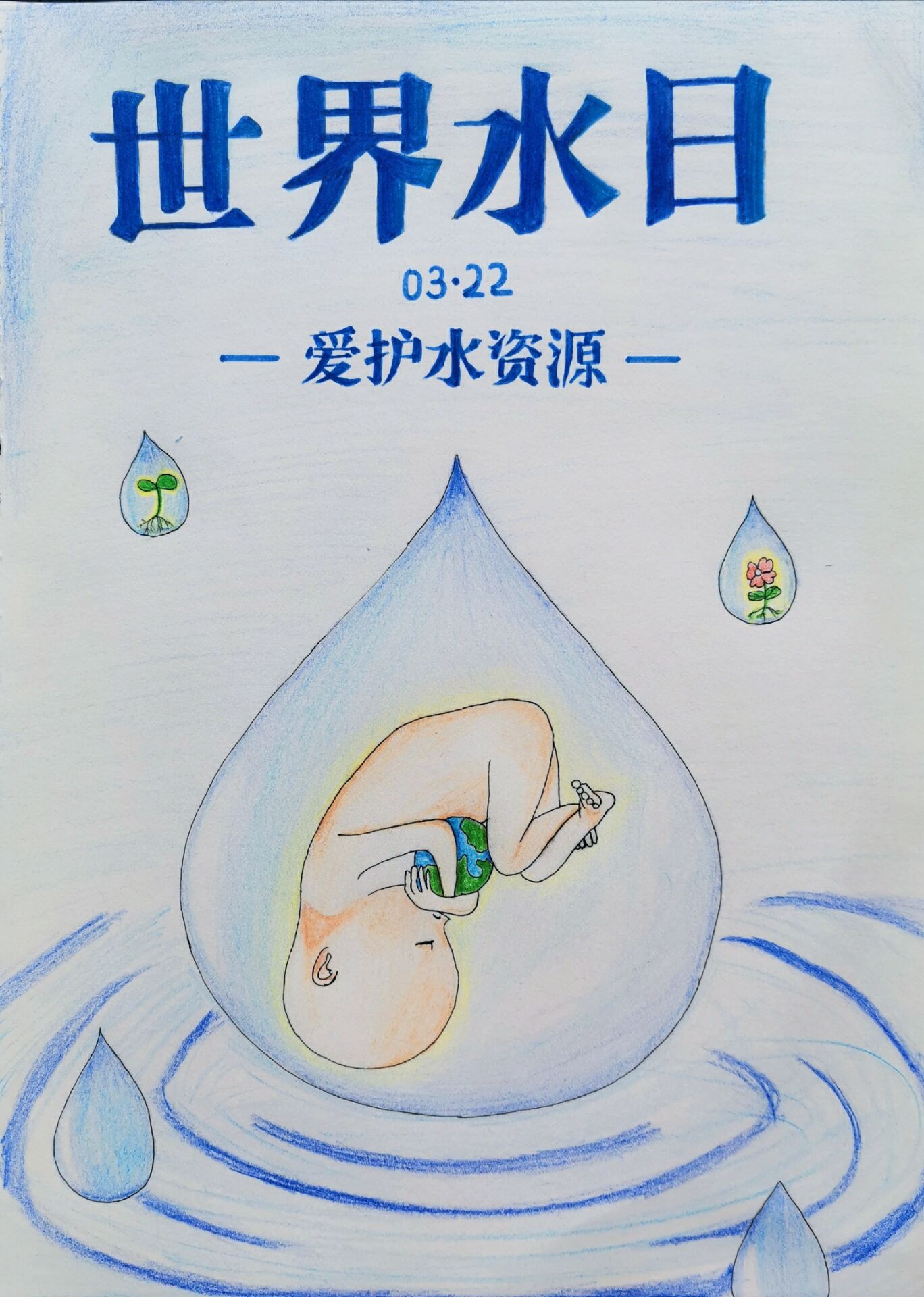 3月24日至29日,同学们创作并提交了自己的作品,之后作为节水宣传志愿者,在线上将自己的作品发布至QQ空间/微信朋友圈,并配上与节约用水相关的文字,起到了节水公益宣传的效果。