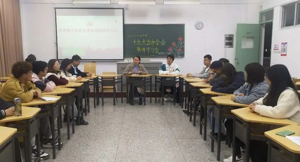 王璐老师围绕“改革”、“开放”、“创新”三个关键词向同学们分享了自己学习十九届五中全会精神的感悟,展望十四五,我国将建成制造强国、质量强国、科技强国、文化强国、教育强国、人才强国、网络强国、体育强国、交通强国,而青年员工将全程参与中国梦实现伟大进程,是参与规划讨论、贯彻规划精神、实践规划内容的重要战略群体,自觉将个人的职业规划和理想目标融入到全面建设社会主义现代化国家新征程。团学骨干们要带头全面学习领会党的十九届五中全会精神。