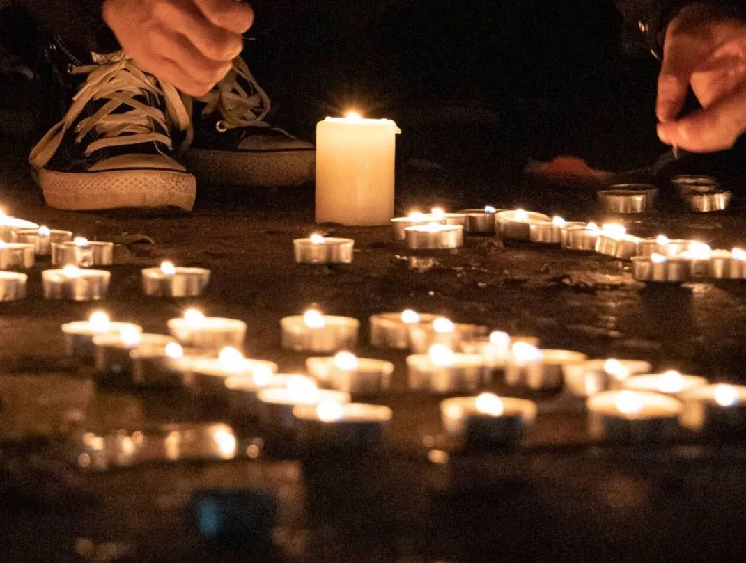 五点二十分,同学们共同在纪念碑前用蜡烛摆上“12·13”和“83”的字样,并手捧蜡烛和鲜花,围绕“12·13”、“83”的字样站立,低头默哀,用蜡烛寄托对大屠杀死难同胞的哀思、表达对不甘屈辱奋起反抗的斗士的敬重。