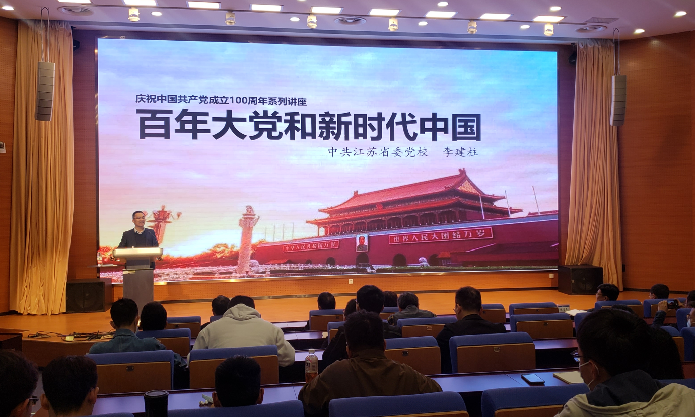 3月29日下午,公司党委邀请中共江苏省委党校哲学教研部李建柱教授作党史学习教育专题报告。公司党委委员、教师党员和员工党员代表130多人聆听了报告。公司党委书记汪建新主持报告会。