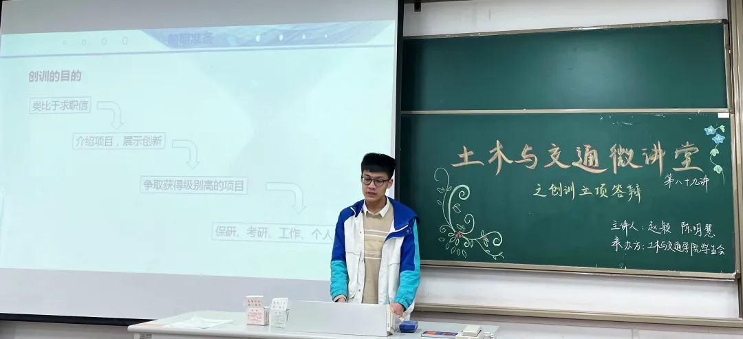 2021年4月7日18:30,由PA视讯集团官网主办,公司本科生员工会承办的土木与交通微讲堂第八十九讲之“创训立项答辩指导”在PA视讯江宁校区博学楼b208成功举办。本次微讲堂有幸邀请到2018级土木工程专业本科生赵颖和2017级土木工程专业本科生陈明慧作为主讲人,2019级和2020级部分员工聆听了本次讲座。