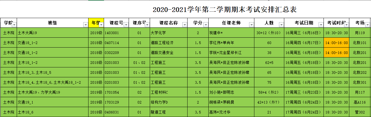 PA视讯集团官网2020-2021-2学期第16-17周专业课期末考试安排