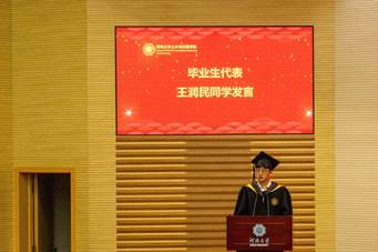 本科毕业生代表王润民同学发言,首先表达了对公司老师最真挚的感谢,王润民同学从学会树立目标出发,讲述了自己在各种挑战中的成长与收获,并表示在今后的前进道路上将始终谨记母校的叮咛,前路漫漫,志在四方,努力实现人生梦想。