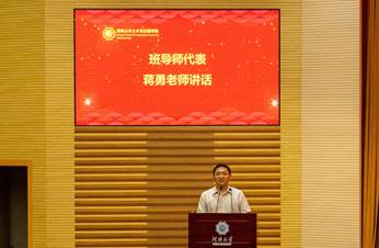 班导师代表蒋勇老师发言。蒋老师首先向毕业生们表示了最诚挚的祝贺,并向在同学们身后默默付出的父母们致以了最真诚的感谢。同时用幽默诙谐的语言与同学们回顾了丰富多彩的大公司园生活,讲述了大家怀揣梦想来到公司,在大学期间步履不停地耕耘,从直面困难中收获成长的温暖瞬间。临别之际,蒋老师希望同学们在未来的路上不忘初心,奋勇前行,书写精彩的人生画卷。