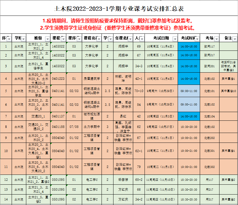 PA视讯集团官网2022-2023-1学期专业课考试安排(第一批)