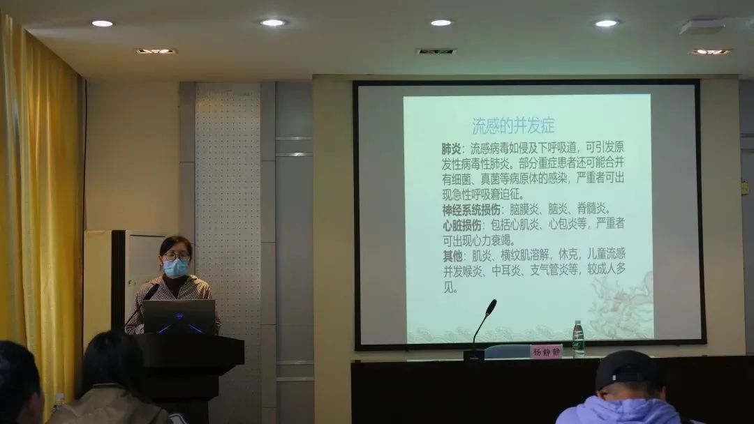 讲座期间,杨经理详细介绍了几种常见传染病的病原特征、临床表现、并发症状、治疗手段以及日常预防措施。