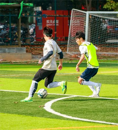 滴滴汗水,伴随着矫健的步伐,挥洒在绿茵场上。种种信念,凝集成坚定的目光,寄托于脚下的足球。严防死守,永不言弃,他们以飞扬灵动的身影诉说着这个秋天关于足球的故事。