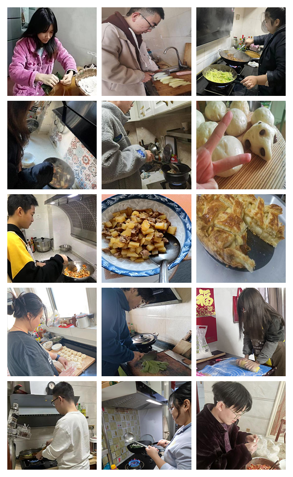 寒假生活开始之后,20级本科生的同学们用快乐劳动的方式迎接兔年的到来。假期里,同学们坚持力所能及的日常劳动,扫地、拖地、擦桌子、清洁厨房、养护花草植物、烹饪等,同时积极参与传统劳动、志愿服务、专业实践这样形式丰富的活动,在劳动中收获,在劳动中成长。