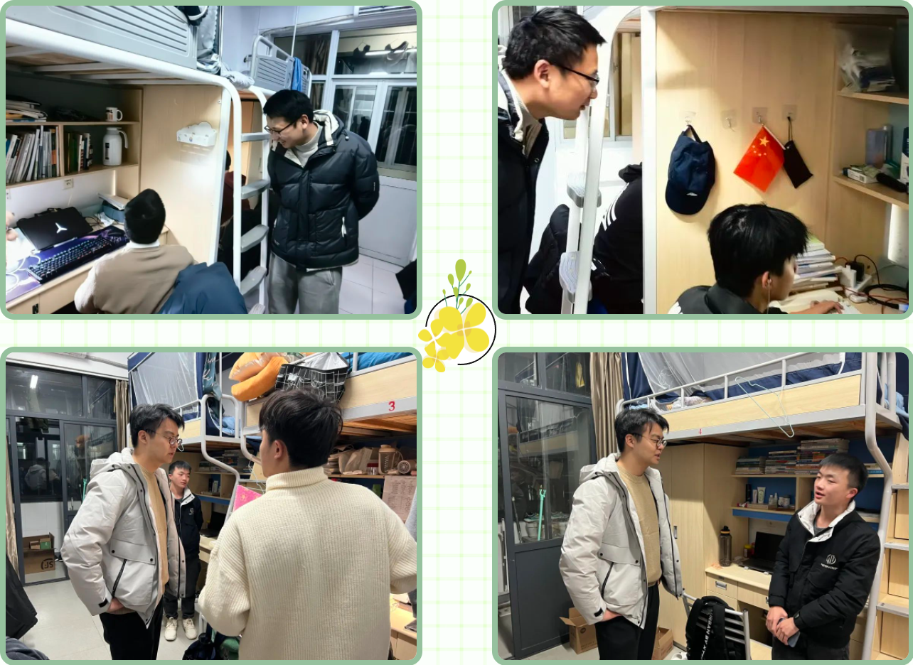 此次深入走访宿舍活动,对PA视讯集团官网学子的身心健康状态和学习情况进行了亲切慰问,同时对寒假期间坚持自律学习打卡的同学进行了表扬,进一步加深了师生间联系。相信同学们能牢记老师们的叮嘱,不断完善自我,以更加饱满的姿态投入到新学期的学习当中。
