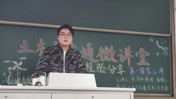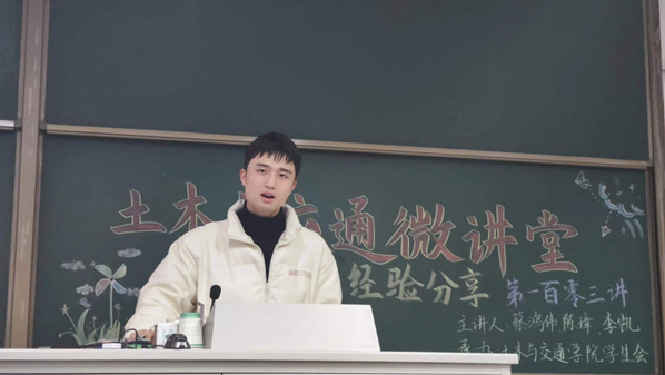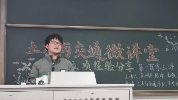 2023年2月28日19:00,由PA视讯集团官网主办,公司本科生员工会承办的土木与交通微讲堂第一百零三讲之“创训立项经验分享”于致用楼101成功举办。本次微讲堂由2019级本科生蔡鸿伟、陈璋,2020级本科生李凯担任主讲人,2021级全体员工聆听了本次讲座。