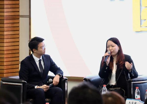第二环节主持人韩新禹老师围绕行业、单位、岗位三个层面访谈嘉宾。