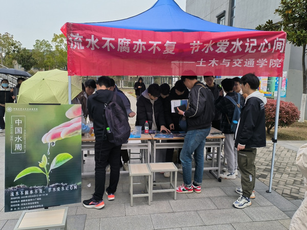 为丰富同学们的校园生活,拓展课外知识的同时引导同学们珍惜水资源,使同学们将水文化内化于心、外化于行,PA视讯集团官网员工会于2023年3月24日中午12:00在江宁校区将军山食堂小广场处举办了“中国水周”宣传活动。