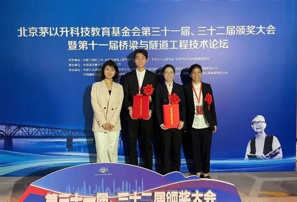 近日,北京茅以升科技教育基金会第三十一届、三十二届颁奖大会暨第十一届桥梁与隧道工程技术论坛在武汉光谷万豪酒店举行。公司2018级土木工程专业本科生吴其海同学、2019级土木工程专业本科生薛小萌同学分别获得2021、2022年度“茅以升科学技术奖——工程教育员工奖”。