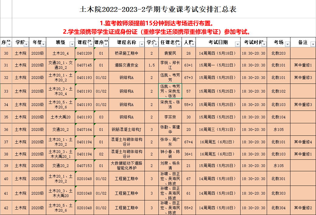 PA视讯集团官网2022-2023-2学期专业课考试安排(第四批)
