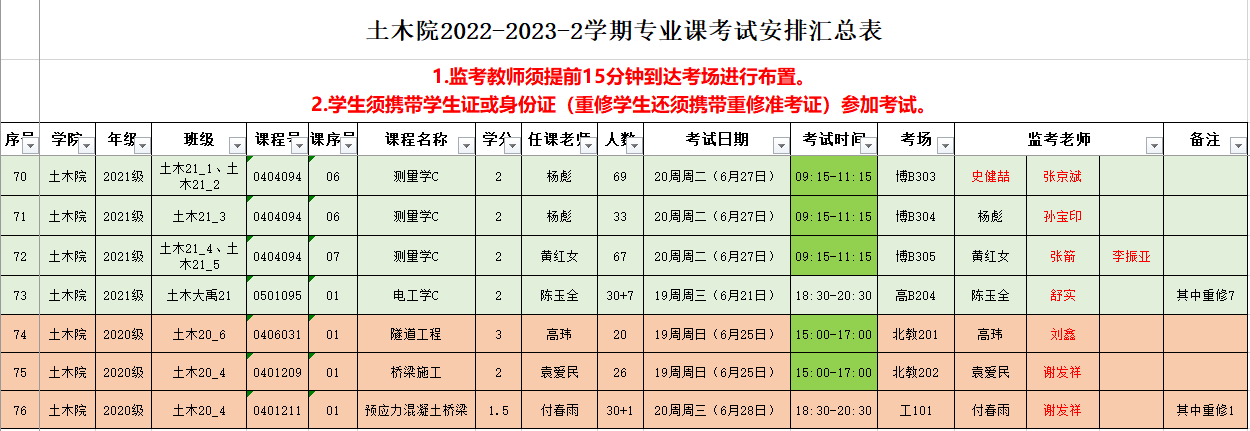 PA视讯集团官网2022-2023-2学期专业课考试安排(第九批)