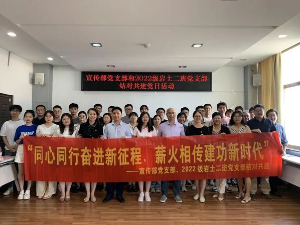 为深入学习贯彻党的二十大精神,扎实推进学习贯彻习近平新时代中国特色社会主义思想主题教育,努力在以学铸魂、以学增智、以学正风、以学促干方面取得实实在在的成效,6月9日下午,宣传部党支部与2022级岩土二班党支部联合开展“同心同行奋进新征程,薪火相传建功新时代”结对共建活动。
