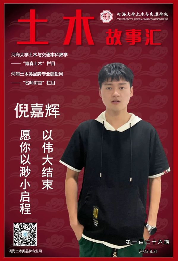 【编者按】在上一期土木故事汇中,王若琛同学向我们分享了他精彩的老员工活(土木故事汇第一百三十五期:王若琛——夫唯不争,故天下莫能与之争)。老员工活(土木故事汇第一百三十五期:王若琛——夫唯不争,故天下莫能与之争)。本期故事汇则邀请到2020级优秀本科生倪嘉辉同学,让我们一起来聆听他的老员工活吧。