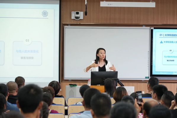 接着,王璐副书记对老员工活、课程学习情况及新生可能会面临的心理困惑和问题做了详细的介绍。
