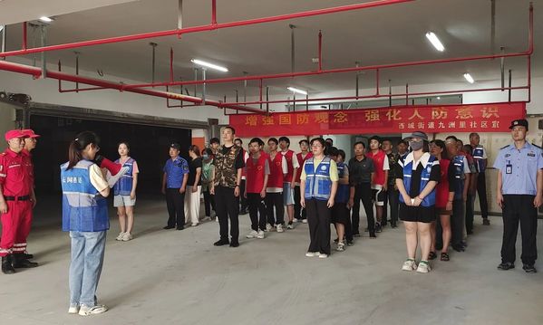 首先,由社区工作者组织社区群众有序到达演练地点,并分成若干队伍参与演练,志愿者帮助社区工作人员做好演练前的准备工作,保证演练活动的顺利进行。随后,由专业消防人员进行民防演练相关注意事项的讲解,规划正确逃生路线,学习正确逃生方法。接着,防空警报拉响,社区群众在志愿者带领下安全地进行民防演练,演练过程井然有序,时刻遵循民防演练的安全准则,在志愿者与社区工作人员的协调帮助下,民防演练顺利完成。最后,社区工作人员总结交流了民防演练的过程,强调了本次民防演练的重要性。
