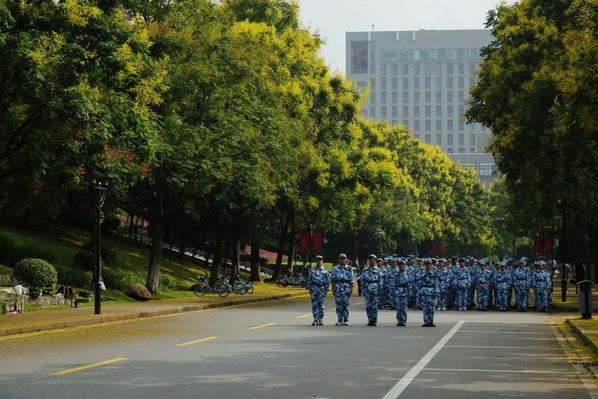 在烈日下站着挺拔军姿,在余晖中唱着铿锵军歌。这是我们新的校园生活中难以忘怀的场景。
