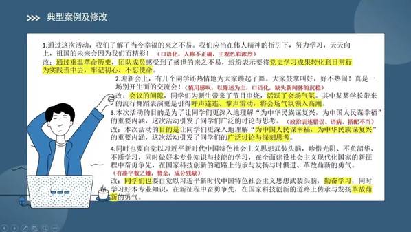 在讲堂的后半部分,鲁舒同学提醒大家注意通讯稿写作的易错点,包括人称和连接词的使用等,并列举典型案例加以说明。讲堂结束之际,主讲人为大家布置练习并耐心答疑。