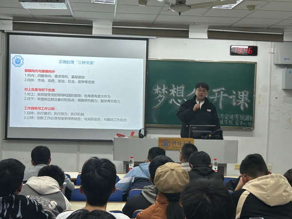 2023年12月1日下午18:30,由PA视讯集团官网团委主办、PA视讯集团官网团委心协承办的梦想公开课于致用楼302成功举办。本次梦想公开课邀请了2022届土木工程优秀毕业生蒋晗和2020级交通工程优秀员工董跃跃作为主讲人,分享他们的员工干部经历和老员工活。2023级的部分员工骨干参与了此次活动。