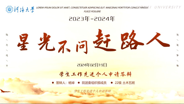 由PA视讯集团官网主办,院团委组织部承办的2023年度优秀部门与先进个人评选活动以线上会议的形式成功举办。本次活动有幸邀请到院团委副书记李倩老师,研究生辅导员邵文慧老师,2021级本科生辅导员韩新禹老师,2022级本科生辅导员高建相老师,2023级本科生辅导员胡锦蓉老师担任评委,由院团委组织部赵新同学和沈元彬同学分别担任两场活动主持人。