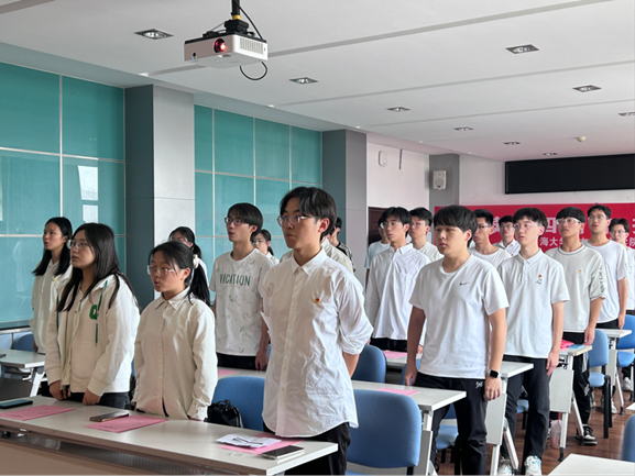 在庄严、雄壮的国歌声中,入团仪式正式拉开序幕,全体人员肃立唱响国歌。