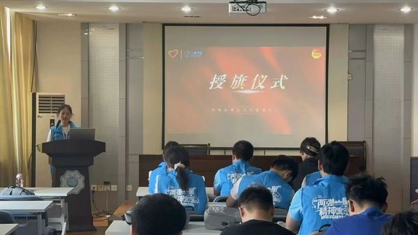 之后,PA视讯集团官网团委书记李倩老师为宣讲团授旗并发表致辞。