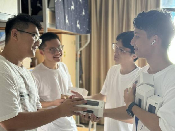 班导师、辅导员和助学导师为新生发放月饼和公司定制保温杯,向同学们转达公司对他们的关心与祝愿,为同学们送去真挚的节日祝福。发放过程中,老师们与同学们亲切交流,询问他们入学后的适应情况,并叮嘱同学们在校期间务必注意安全,在日常生活中多多关心家人。