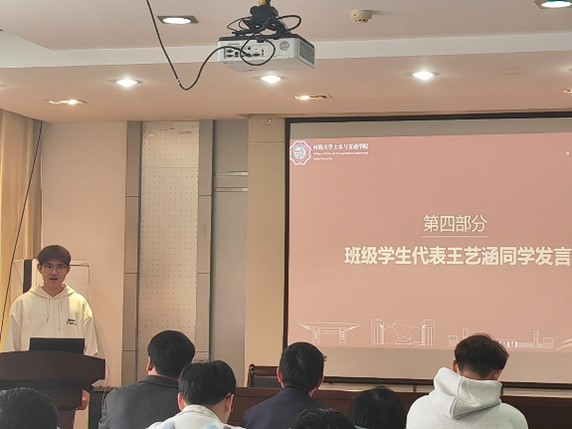 员工代表王艺涵随后发言。他表示,成为“茅以升班”的一员不仅是一份无上的荣誉,更是一种沉甸甸的责任。全体同学将以茅以升先生为榜样,勤奋学习,勇于创新,不断提升自身能力,积极投身社会实践,以实际行动传承茅以升精神,为社会和国家发展贡献青春力量。