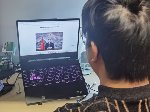 国家主席习近平发表的二〇二五年新年贺词令人备受鼓舞、心潮澎湃。贺词回顾了过去一年中波澜壮阔的奋斗与成就,使我们真切感受到国家发展的坚实步伐。贺词中那句“家事国事天下事,让人民过上幸福生活是头等大事”,如同一股暖流,让我深深感受到来自祖国母亲的亲切关怀。在新的一年里,我将以更加坚定的信念和昂扬的斗志,不断磨砺自己,努力提升自身能力与素养,全力以赴为国家的创新事业贡献出属于自己的一份力量。