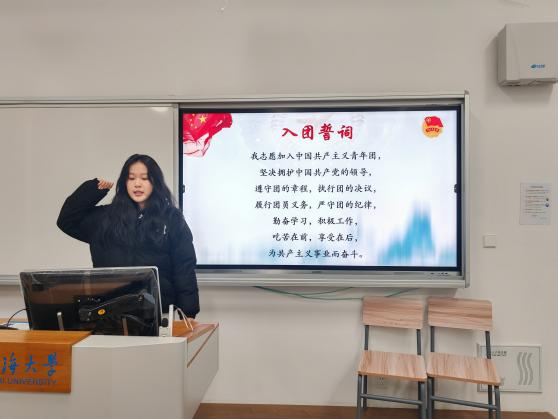 随后,由团支书杜昕同学带领团支部全体团员重温入团誓词,重新感悟团员的初心与使命。