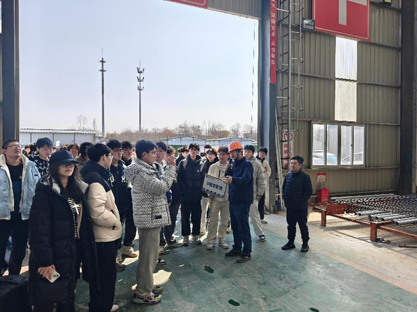 公司师生前往南京市公共工程建设中心宁盐高速公路南京段工程项目现场。工作人员热情接待到访师生,带领大家参观宁盐高速公路展厅和钢筋加工配送中心,近距离观察布料机、钢筋切割机、钢筋调直机等机器现场运作。参观过程中,公司师生与项目部工作人员深入交流,围绕当前行业发展现状、先进技术运用、人才需求情况等问题展开热烈讨论,期待校企双方能够更加深入开展产教研合作,赋能双方供需对接。